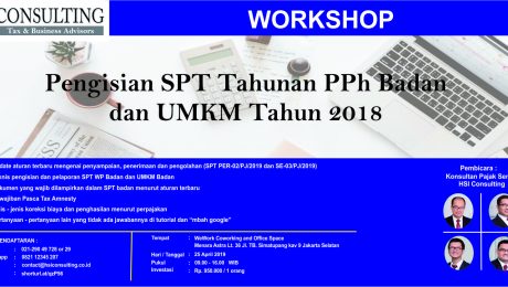 Mendekati tenggat waktu 31 Maret 2019, bagaimana WP Individu mempersiapkan penyampaian SPT-nya? dan apa saja yang perlu diperhatikan dalam penyampaian SPT Tahunan? Workshop ini akan dibuat secara interaktif dan step – by – step oleh fasilitator yang sudah memiliki pengalaman dan mengcover hal – hal seperti : Update aturan terbaru mengenai penyampaian, penerimaan dan